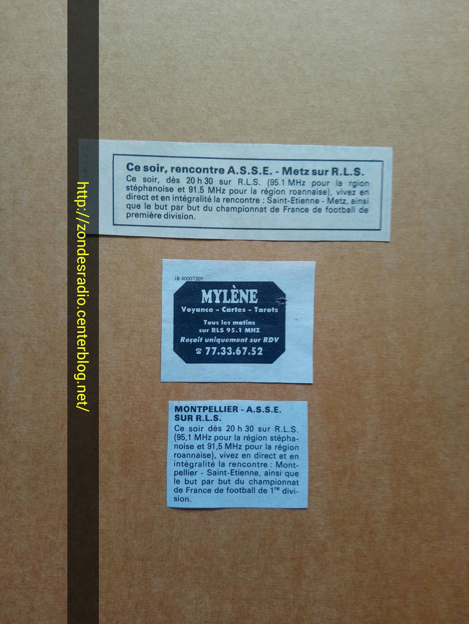 A NOTER qu'en octobre 1989, le programme de RLS à Saint-Etienne était diffusé sur la fréquence Stéphanoise (95.1 FM) ainsi que sur la fréquence Roannaise (91.5 FM).