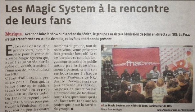 ARTICLE: sur un évènement extérieur de NRJ Loire (Saint-Etienne) issu du journal quotidien "La Tribune-Le Progrès" édition de Saint-Etienne datant du vendredi 20 avril 2012 ci-dessus.