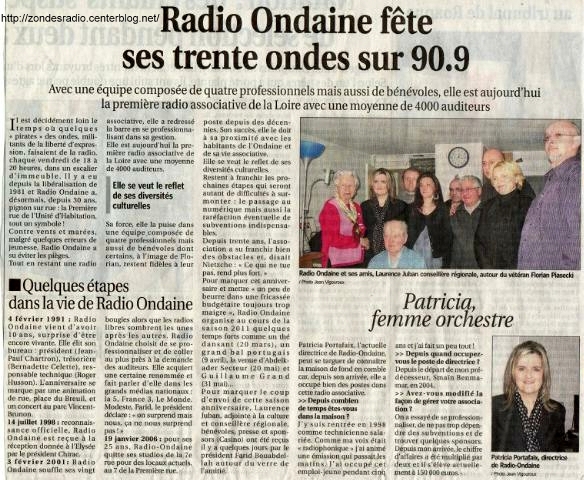 ARTICLE: les trente ans de Radio Ondaine (Firminy) issu du journal quotidien "La Tribune-Le Progrès" édition de l'Ondaine du mardi 08 mars 2011 ci-dessus.